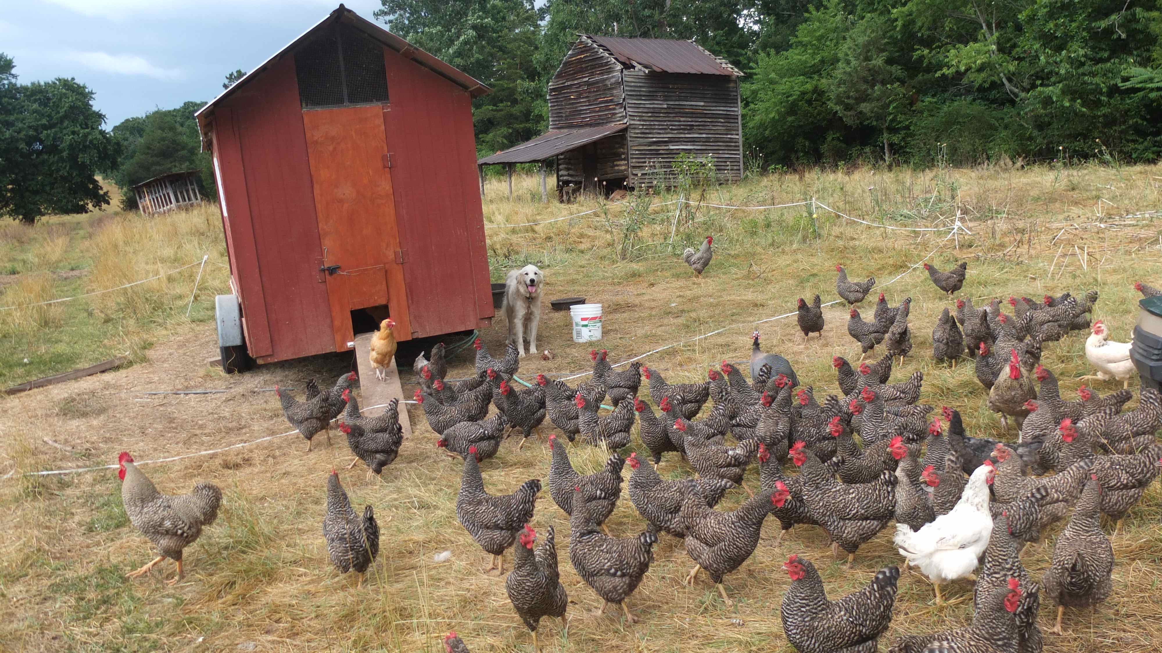 Le gros chien des pyrénées qui surveille le poulailler des prédateurs (aigles, renards, foins…) était content de nous voir et d’emporter son butin du jour, une grosse carcasse de poulet. Nous avons réinstallé toutes les clôtures, rempli toutes les gamelles d’eau, puis nous avons repris notre bonhomme de chemin.