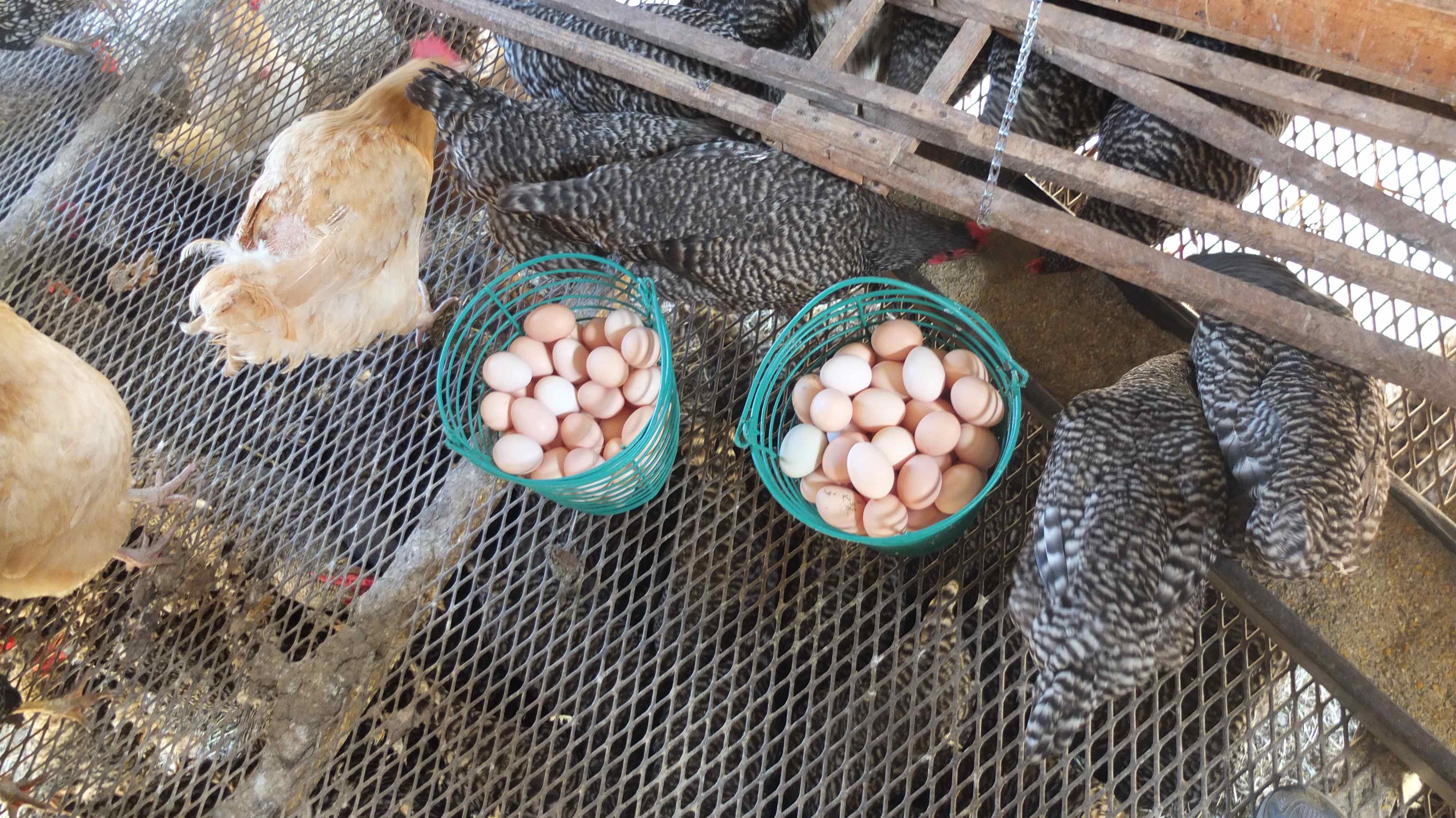 La collecte est très drôle il y a des dizaines de box et certains sont pleins, d’autres vides. Les box sont fermés le soir car sinon les poules dormiraient dedans et feraient leurs besoins, donc elles se débrouillent pour dormir dehors les poulettes et tout va bien.
