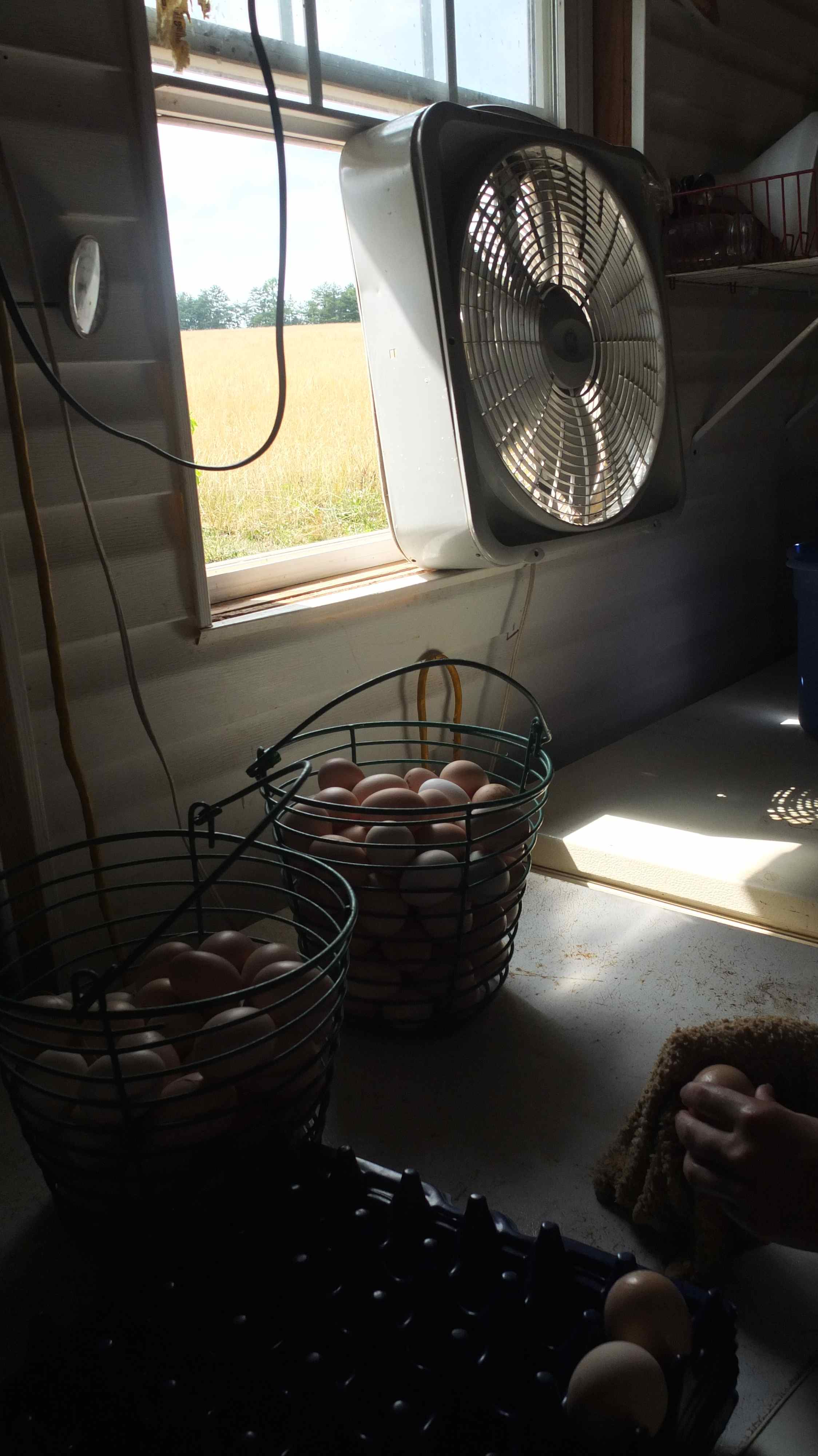 Bref, tout ça pour dire que nous avons ramassé les bons oeufs, repris notre petit tracteur, traversé les champs protégés de barbelés électriques et nous sommes rentrés. Lorsque les oeufs ont été ramassés, il faut les nettoyer pour qu’ils soient très présentables pour la vente. Nous les stockons, ensuite dans des boîtes. Chaque chose est ensuite classée par nom de client, dans l’attente de la livraison.